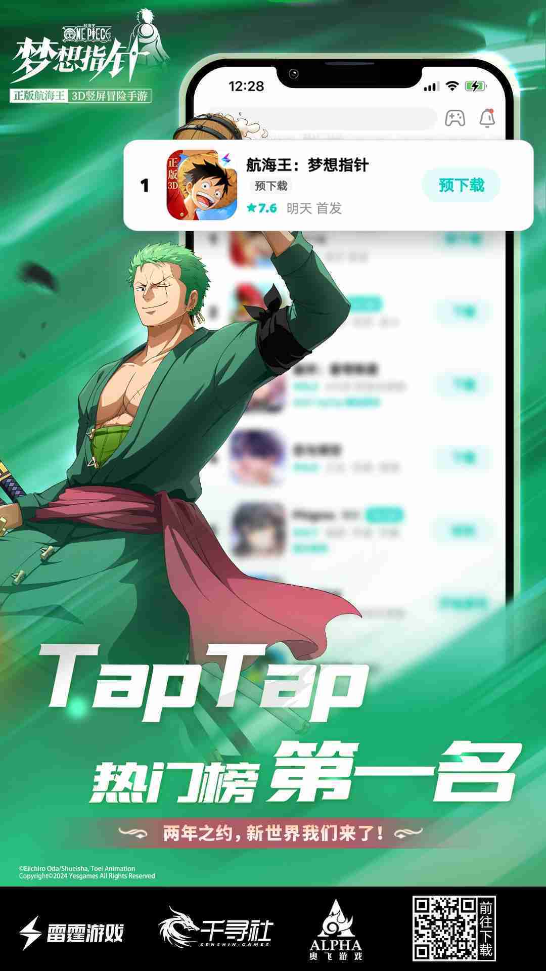 4月1日,,,手游《航海王:::梦想指针》正式公测,,,上线仅2小时不到就登上了App Store免费榜Top1,,,与TapTap热门榜第一。。。