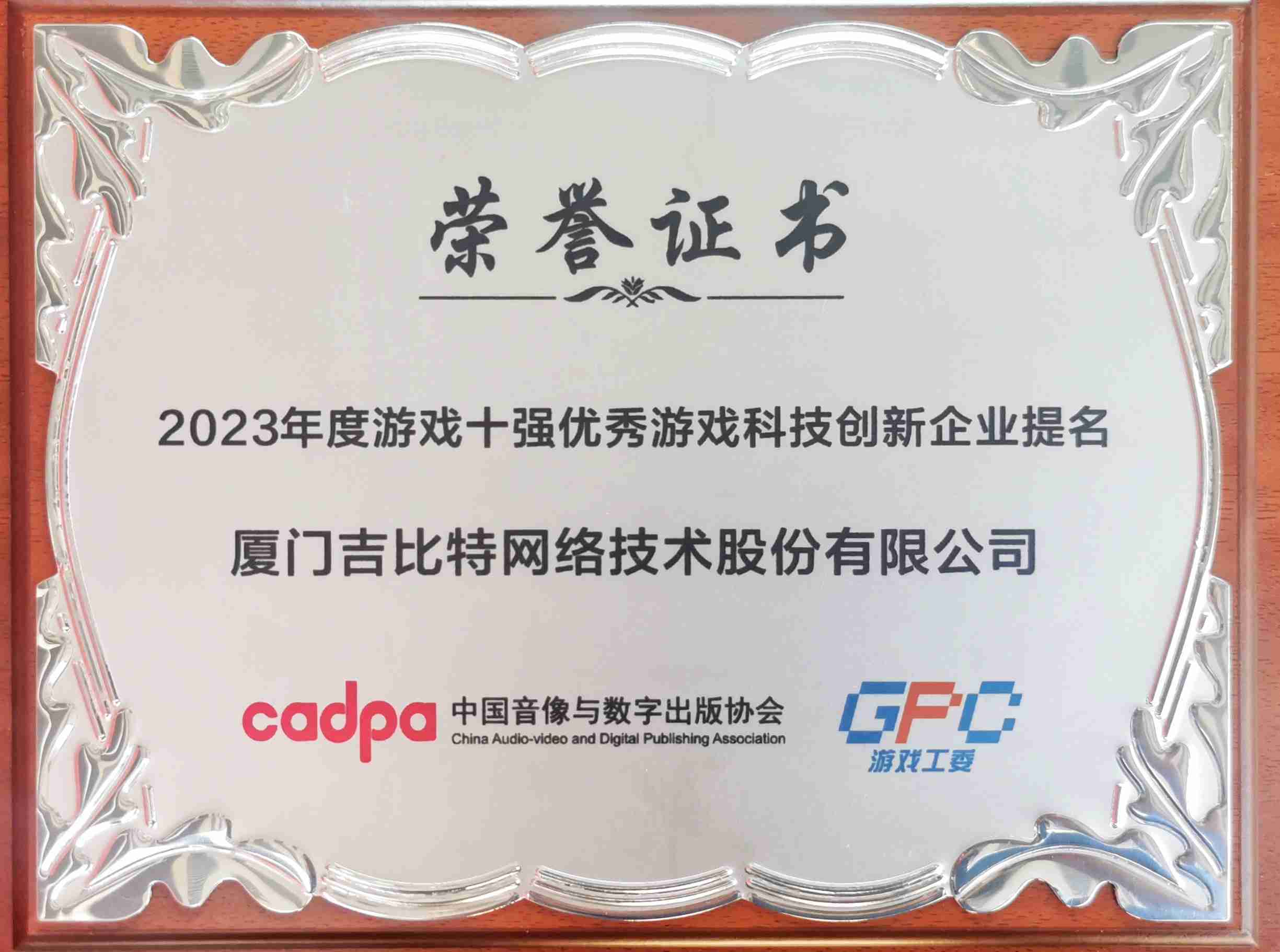 12月14日,,由中国音像与数字出版协会主办,,,中国音数协游戏工委、、、、中国游戏产业研究院承办的“2023游戏十强”评选结果正式发布。。。“游戏十强”在我国游戏产业界享有“中国第九艺术封神榜”美誉,,,,其评选秉承公开、、、公平、、、公正的原则,,,,因其代表性、、、影响力、、公信力被誉为中国游戏产业最高奖项。。继2022年度入围后,,,,JIUYOU.COM今年再次获得“优秀游戏科技创新企业”提名,,,,研发创新实力获得肯定。。