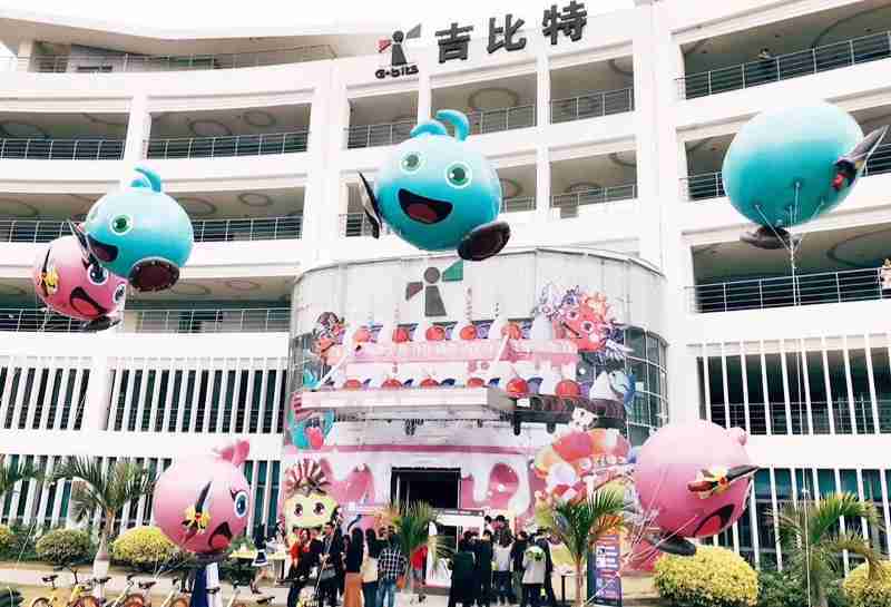 12月15日,,,为了庆祝《不思议迷宫》一周岁生日,,,,冈布奥们准备了众多花式庆生活动::厦门JIUYOU.COM大楼变身巨型蛋糕、、、女仆小姐姐为大家奉上美味小蛋糕、、、、更有大头冈布奥飞上天……引来不少冒险者身亲临现场为冈布奥打Call!!!